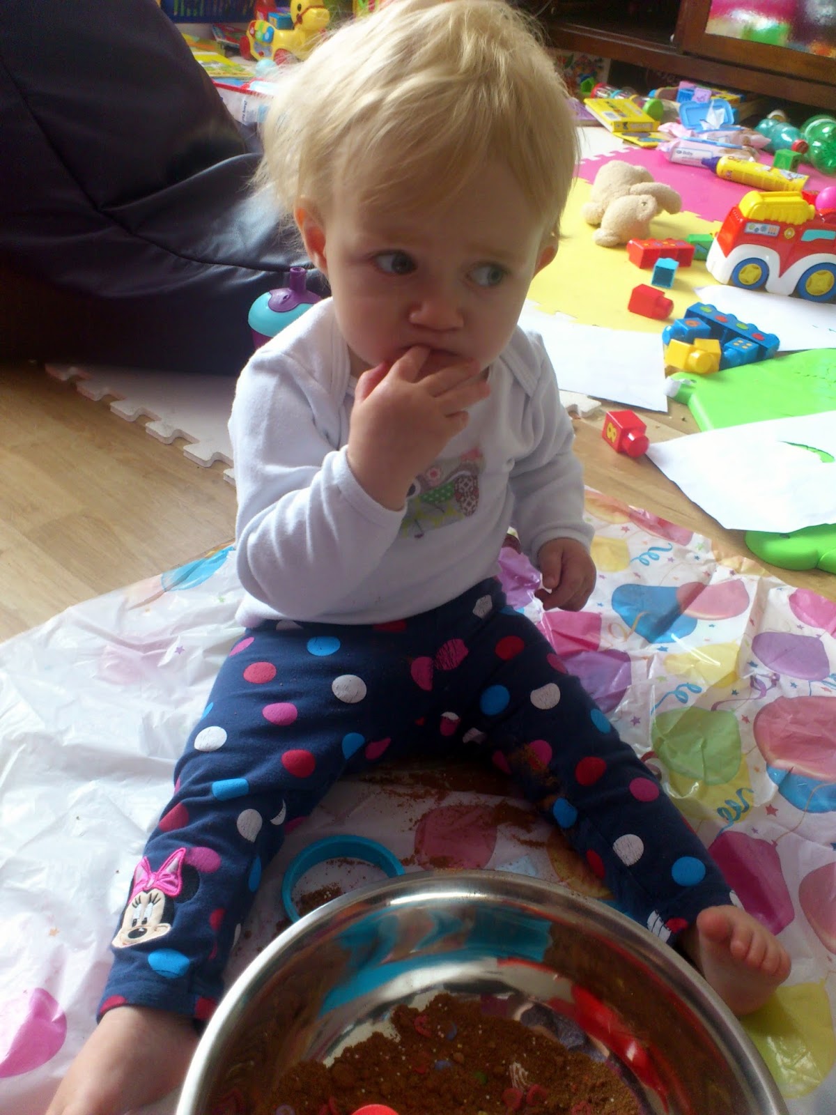 Played with the flannels being used to clean up the cake dough (we were more amused by this)